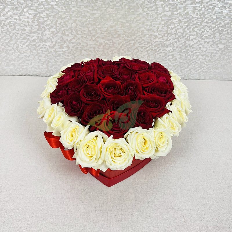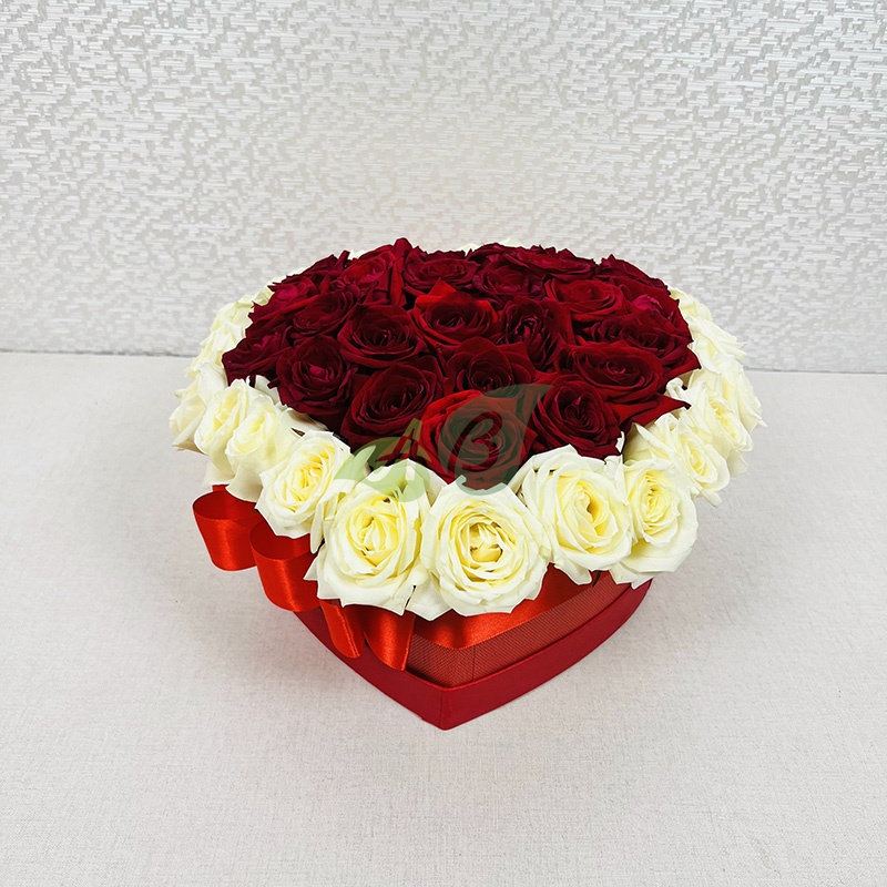 Если дарить цветы в коробке на праздник, то, несомненно, заказывать розы. Доставка этой шикарной композиции из красных и белых роз будет бесплатной по Шахунье.