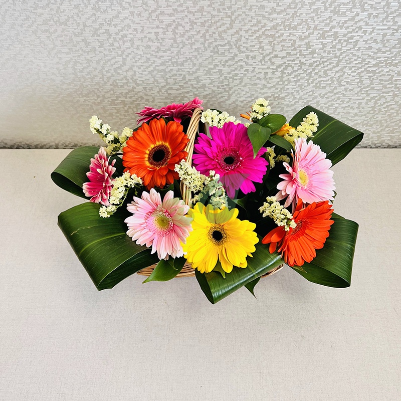Солнечные герберы, оттененные зеленью широких листьев выглядят просто роскошно. Такую цветочную корзинку нужно дарить тем, кто ценит неординарность букетов. Каким бы ни был повод для заказа цветов, мы сможем подобрать в дополнение к ним красивую открытку и вписать в нее все те слова, которые вы хотели бы сказать родным.